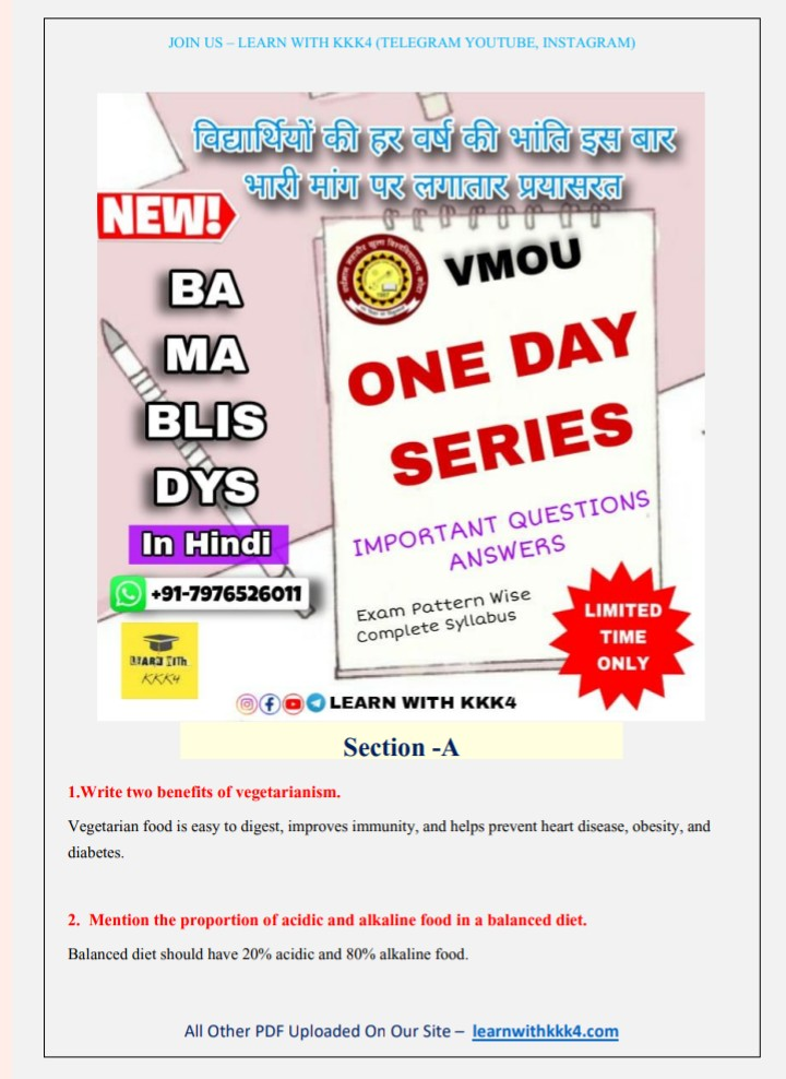 VMOU (Vardhman Mahaveer Open University, Kota) student looking for reliable and effective most important questions for exam paper ? Your search ends here! (LEARN WITH KKK4) presents a comprehensive University one day series PDF specifically designed for VMOU courses. This PDF is the perfect resource to help you excel in your studies and submit top-notch assignments