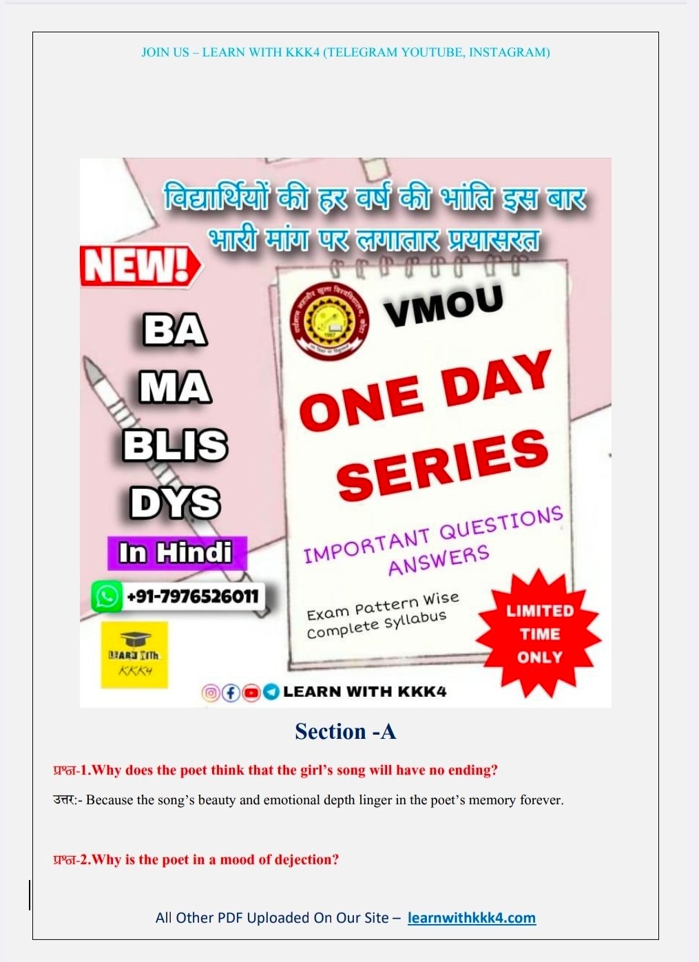 VMOU (Vardhman Mahaveer Open University, Kota) student looking for reliable and effective most important questions for exam paper ? Your search ends here! (LEARN WITH KKK4) presents a comprehensive University one day series PDF specifically designed for VMOU courses. This PDF is the perfect resource to help you excel in your studies and submit top-notch assignments