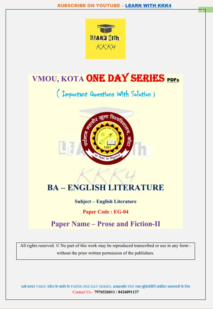 VMOU (Vardhman Mahaveer Open University, Kota) student looking for reliable and effective most important questions for exam paper ? Your search ends here! (LEARN WITH KKK4) presents a comprehensive University one day series PDF specifically designed for VMOU courses. This PDF is the perfect resource to help you excel in your studies and submit top-notch assignments