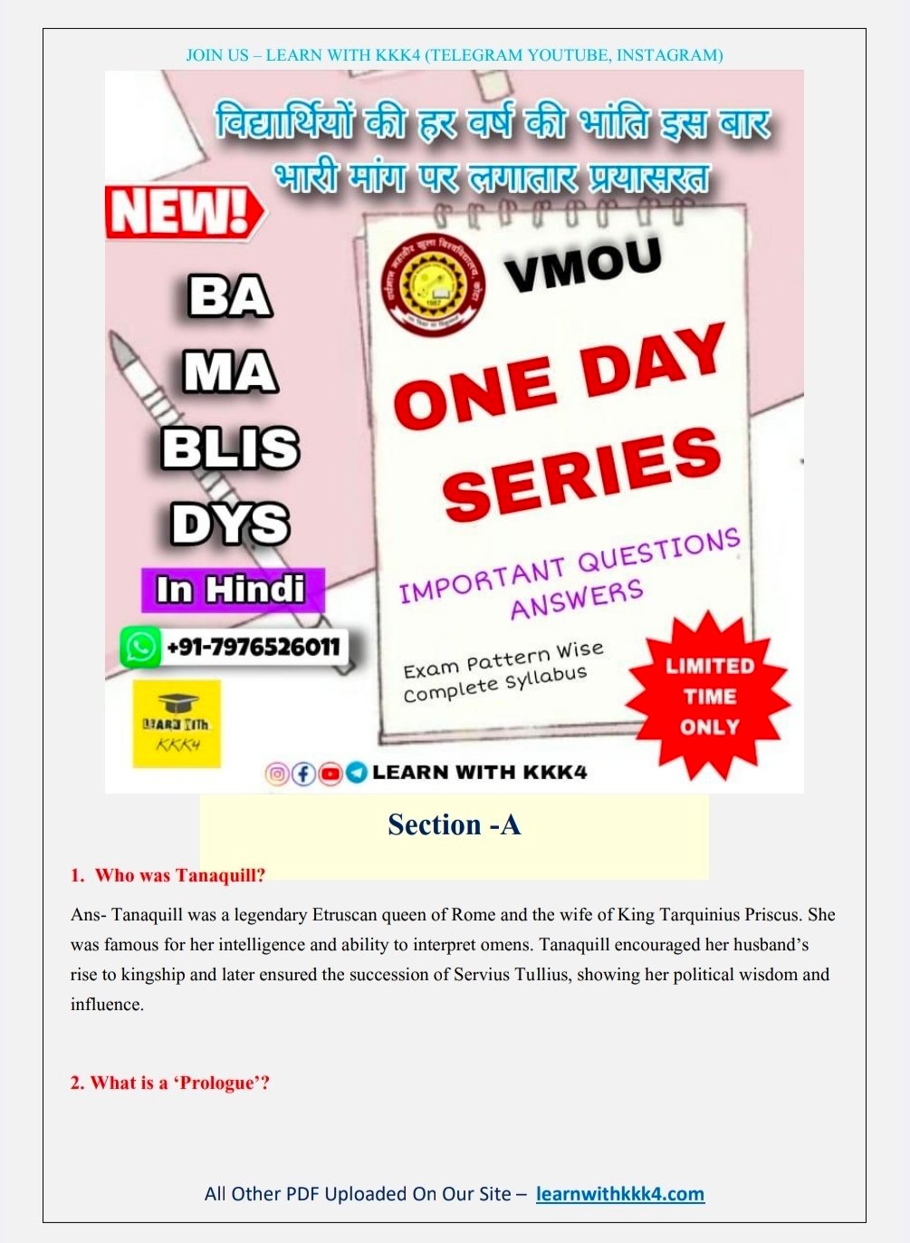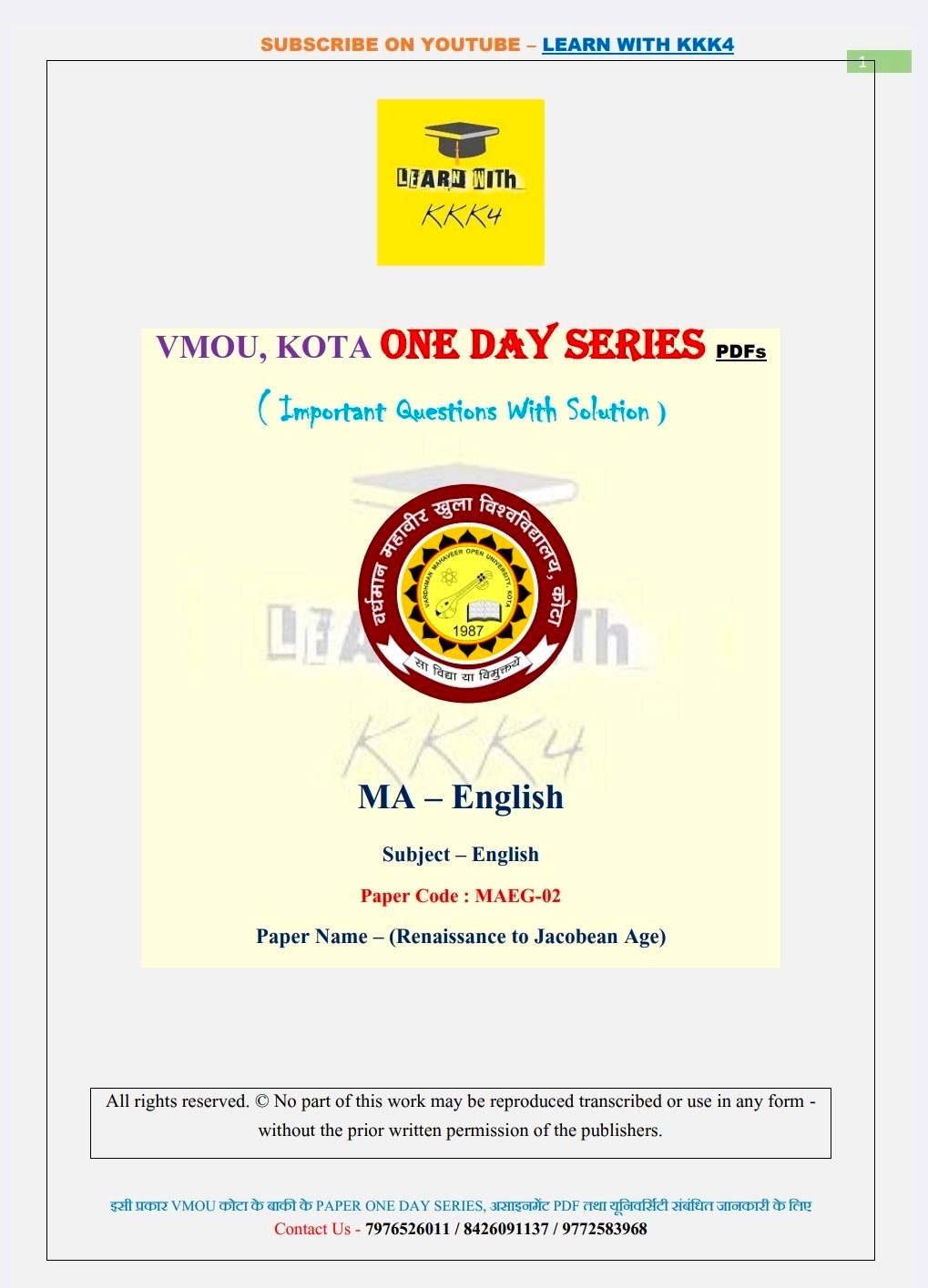 VMOU (Vardhman Mahaveer Open University, Kota) student looking for reliable and effective most important questions for exam paper ? Your search ends here! (LEARN WITH KKK4) presents a comprehensive University one day series PDF specifically designed for VMOU courses. This PDF is the perfect resource to help you excel in your studies and submit top-notch assignments