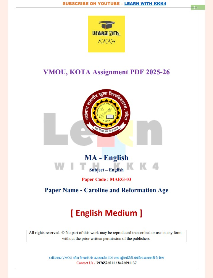 VMOU (Vardhman Mahaveer Open University, Kota) student looking for reliable and effective assignments solutions? Your search ends here! (LEARN WITH KKK4) presents a comprehensive University Assignment Solutions PDF specifically designed for VMOU courses. This PDF is the perfect resource to help you excel in your studies and submit top-notch assignments