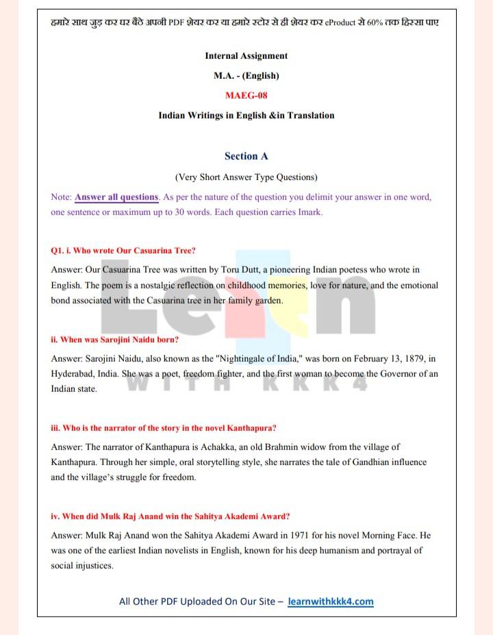 VMOU (Vardhman Mahaveer Open University, Kota) student looking for reliable and effective assignments solutions? Your search ends here! (LEARN WITH KKK4) presents a comprehensive University Assignment Solutions PDF specifically designed for VMOU courses. This PDF is the perfect resource to help you excel in your studies and submit top-notch assignments