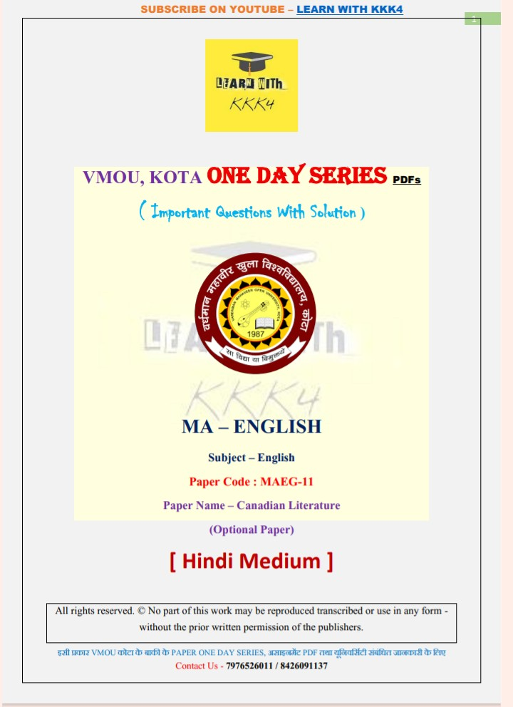 VMOU (Vardhman Mahaveer Open University, Kota) student looking for reliable and effective most important questions for exam paper ? Your search ends here! (LEARN WITH KKK4) presents a comprehensive University one day series PDF specifically designed for VMOU courses. This PDF is the perfect resource to help you excel in your studies and submit top-notch assignments