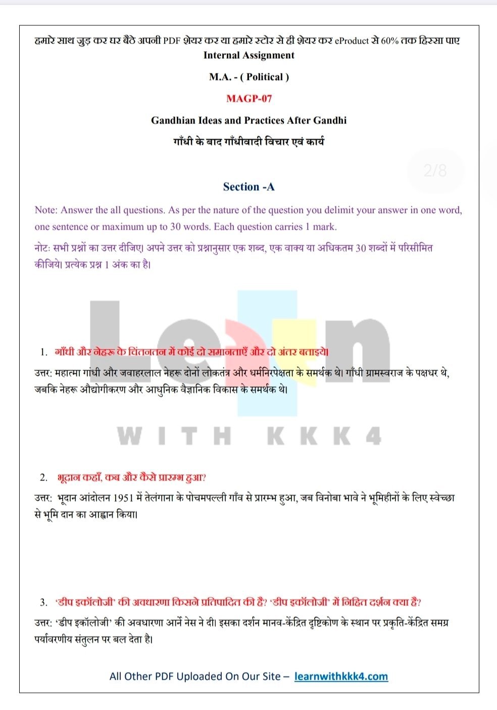 VMOU (Vardhman Mahaveer Open University, Kota) student looking for reliable and effective assignments solutions? Your search ends here! (LEARN WITH KKK4) presents a comprehensive University Assignment Solutions PDF specifically designed for VMOU courses. This PDF is the perfect resource to help you excel in your studies and submit top-notch assignments
