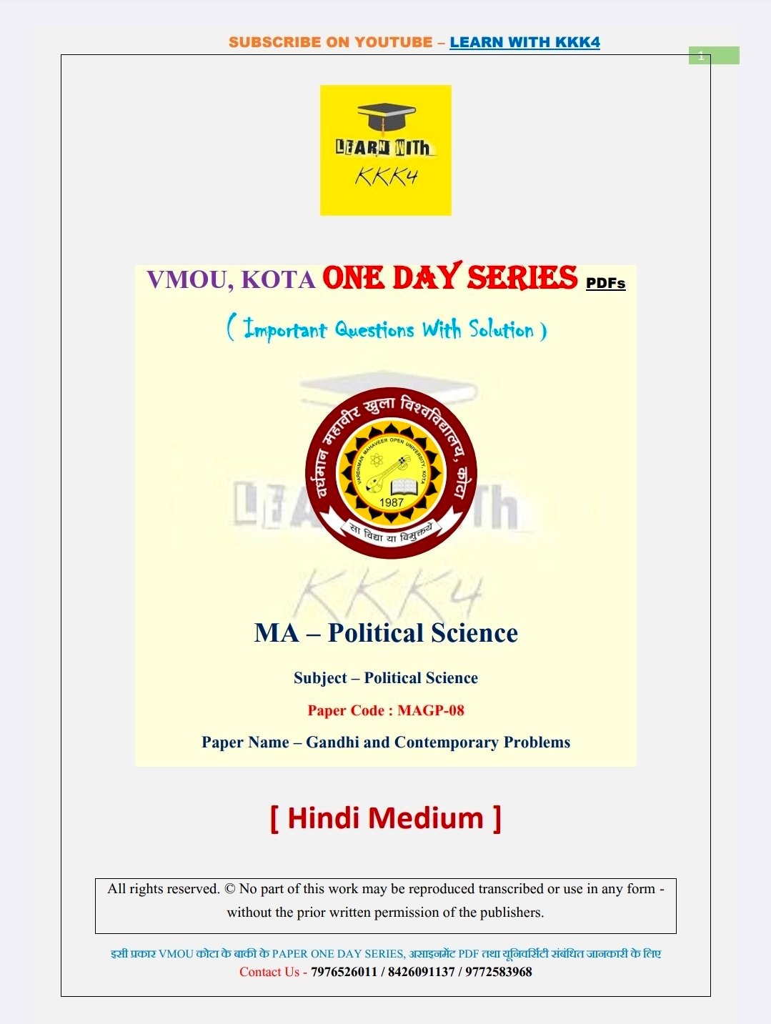 VMOU (Vardhman Mahaveer Open University, Kota) student looking for reliable and effective most important questions for exam paper ? Your search ends here! (LEARN WITH KKK4) presents a comprehensive University one day series PDF specifically designed for VMOU courses. This PDF is the perfect resource to help you excel in your studies and submit top-notch assignments