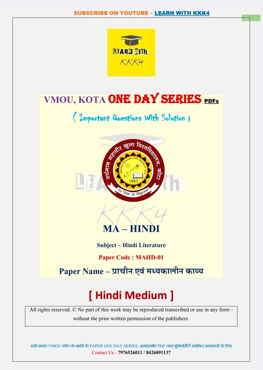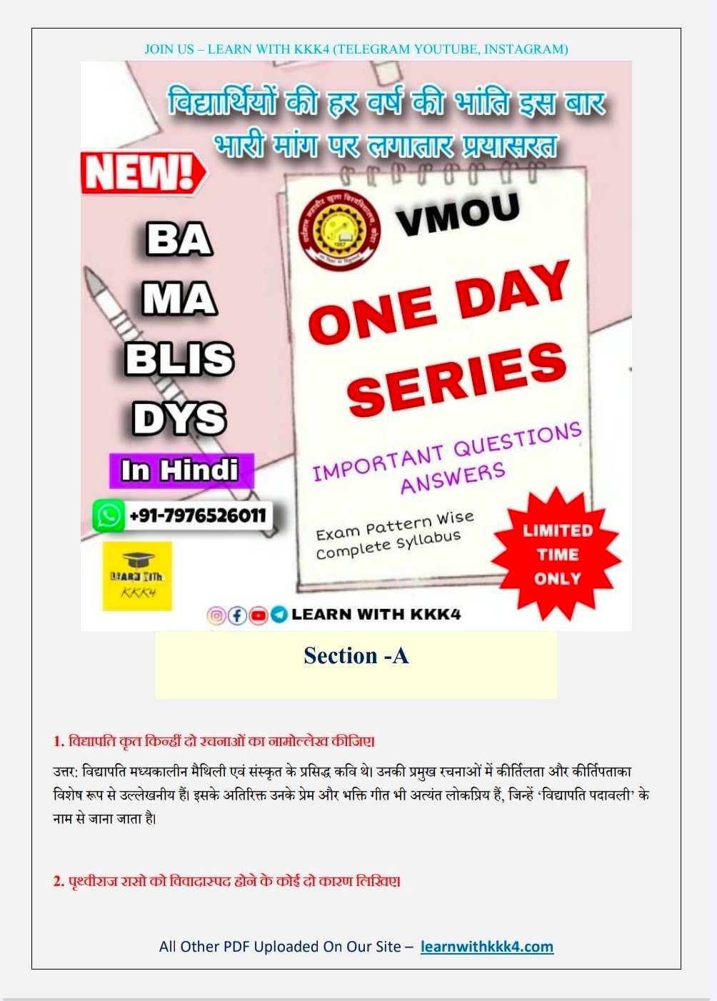 VMOU (Vardhman Mahaveer Open University, Kota) student looking for reliable and effective most important questions for exam paper ? Your search ends here! (LEARN WITH KKK4) presents a comprehensive University one day series PDF specifically designed for VMOU courses. This PDF is the perfect resource to help you excel in your studies and submit top-notch assignments