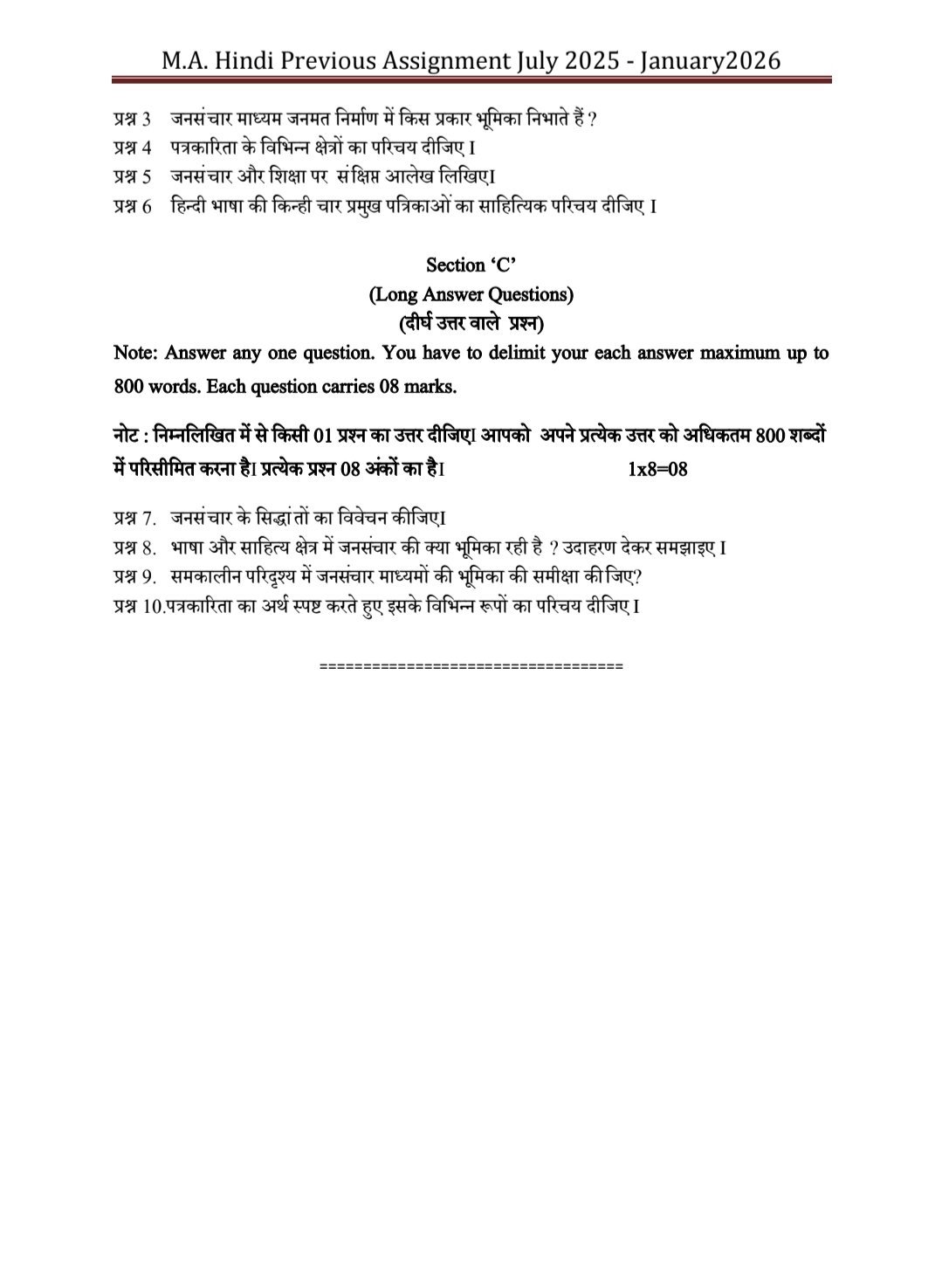 VMOU MA Hindi ASSIGNMENT SOLUTION PDF 2026