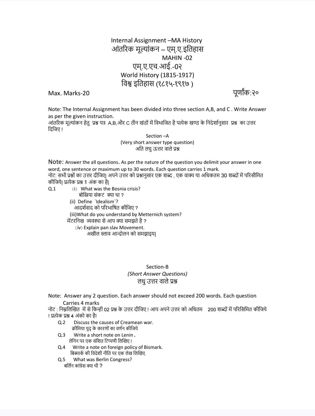 VMOU MA History ASSIGNMENT SOLUTION PDF 2025-26