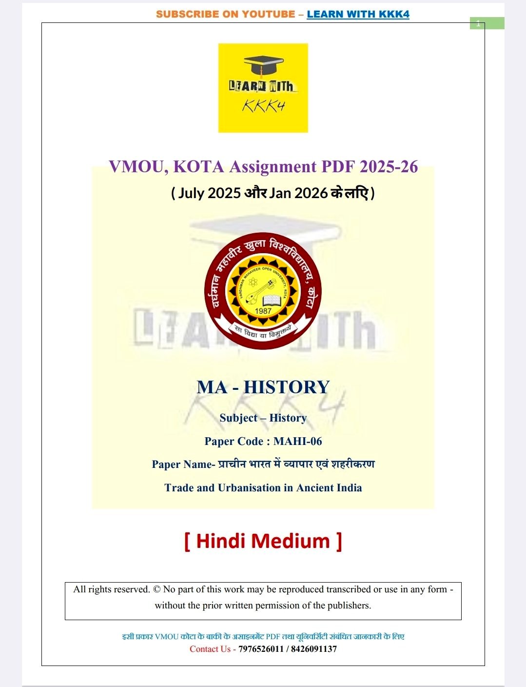 VMOU MA History ASSIGNMENT SOLUTION PDF 2025-26