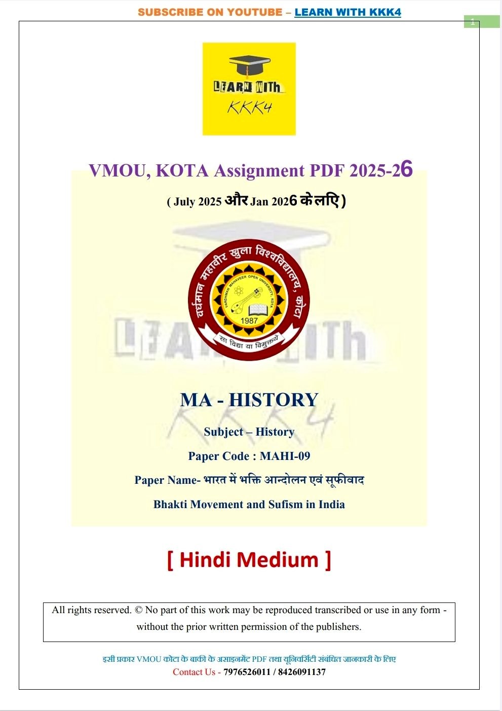 VMOU (Vardhman Mahaveer Open University, Kota) student looking for reliable and effective assignments solutions? Your search ends here! (LEARN WITH KKK4) presents a comprehensive University Assignment Solutions PDF specifically designed for VMOU courses. This PDF is the perfect resource to help you excel in your studies and submit top-notch assignments