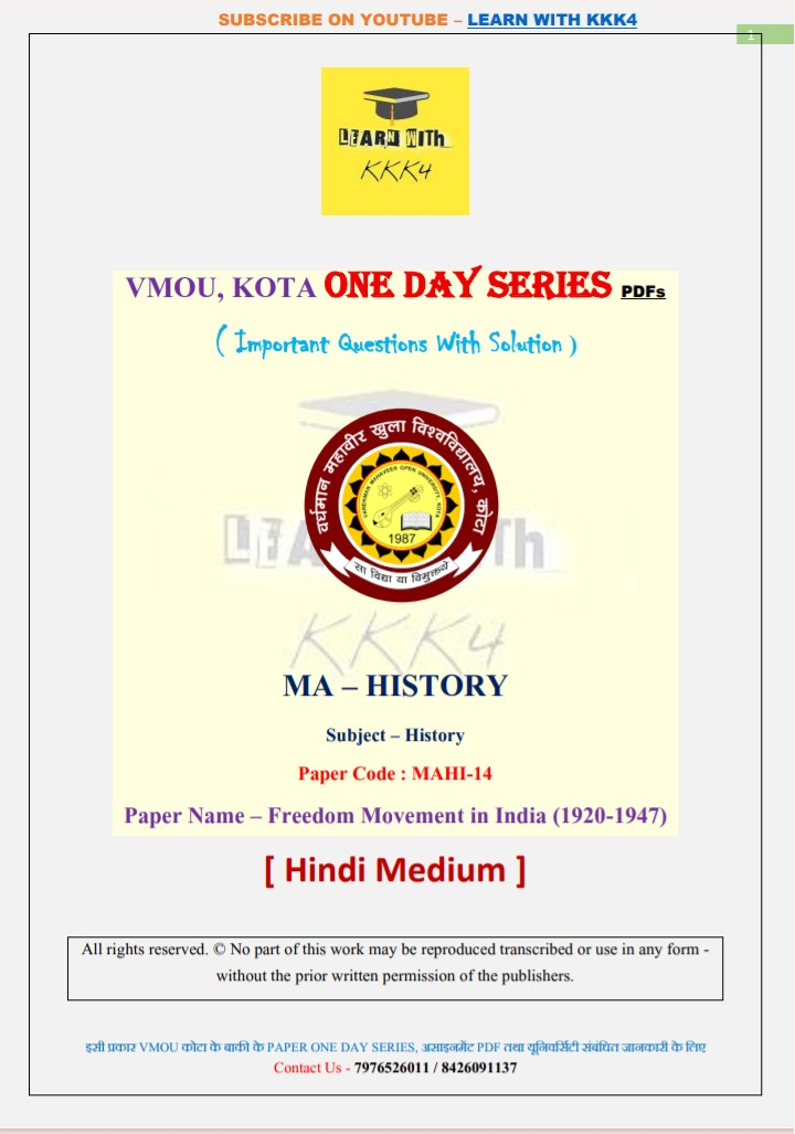 VMOU (Vardhman Mahaveer Open University, Kota) student looking for reliable and effective most important questions for exam paper ? Your search ends here! (LEARN WITH KKK4) presents a comprehensive University one day series PDF specifically designed for VMOU courses. This PDF is the perfect resource to help you excel in your studies and submit top-notch assignments