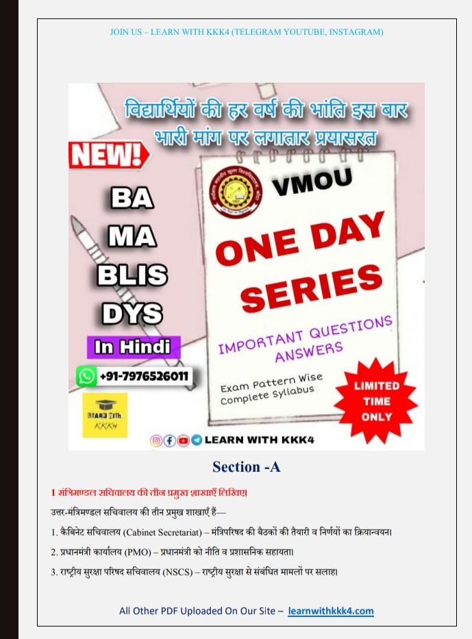 VMOU (Vardhman Mahaveer Open University, Kota) student looking for reliable and effective most important questions for exam paper ? Your search ends here! (LEARN WITH KKK4) presents a comprehensive University one day series PDF specifically designed for VMOU courses. This PDF is the perfect resource to help you excel in your studies and submit top-notch assignments