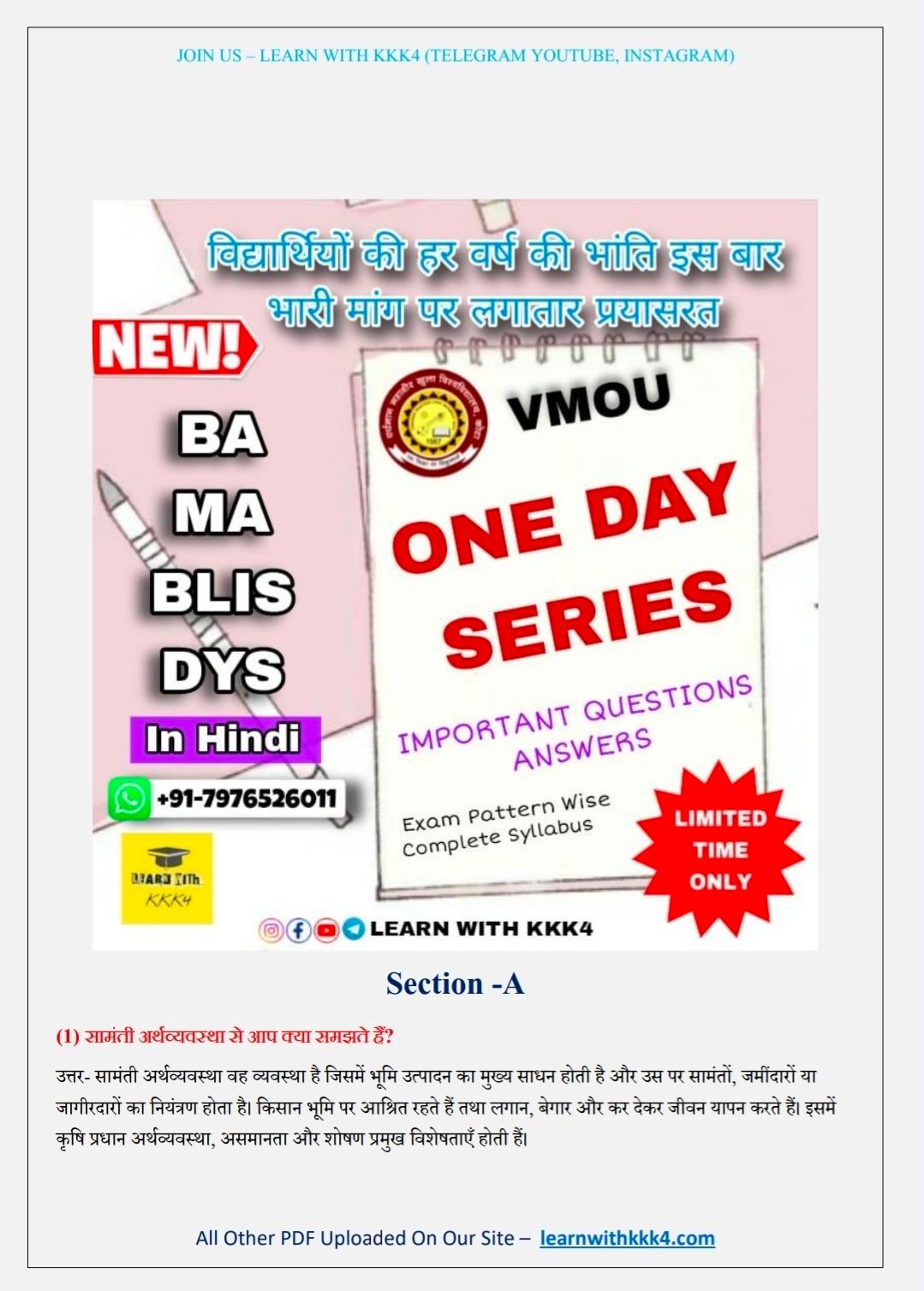 VMOU (Vardhman Mahaveer Open University, Kota) student looking for reliable and effective most important questions for exam paper ? Your search ends here! (LEARN WITH KKK4) presents a comprehensive University one day series PDF specifically designed for VMOU courses. This PDF is the perfect resource to help you excel in your studies and submit top-notch assignments