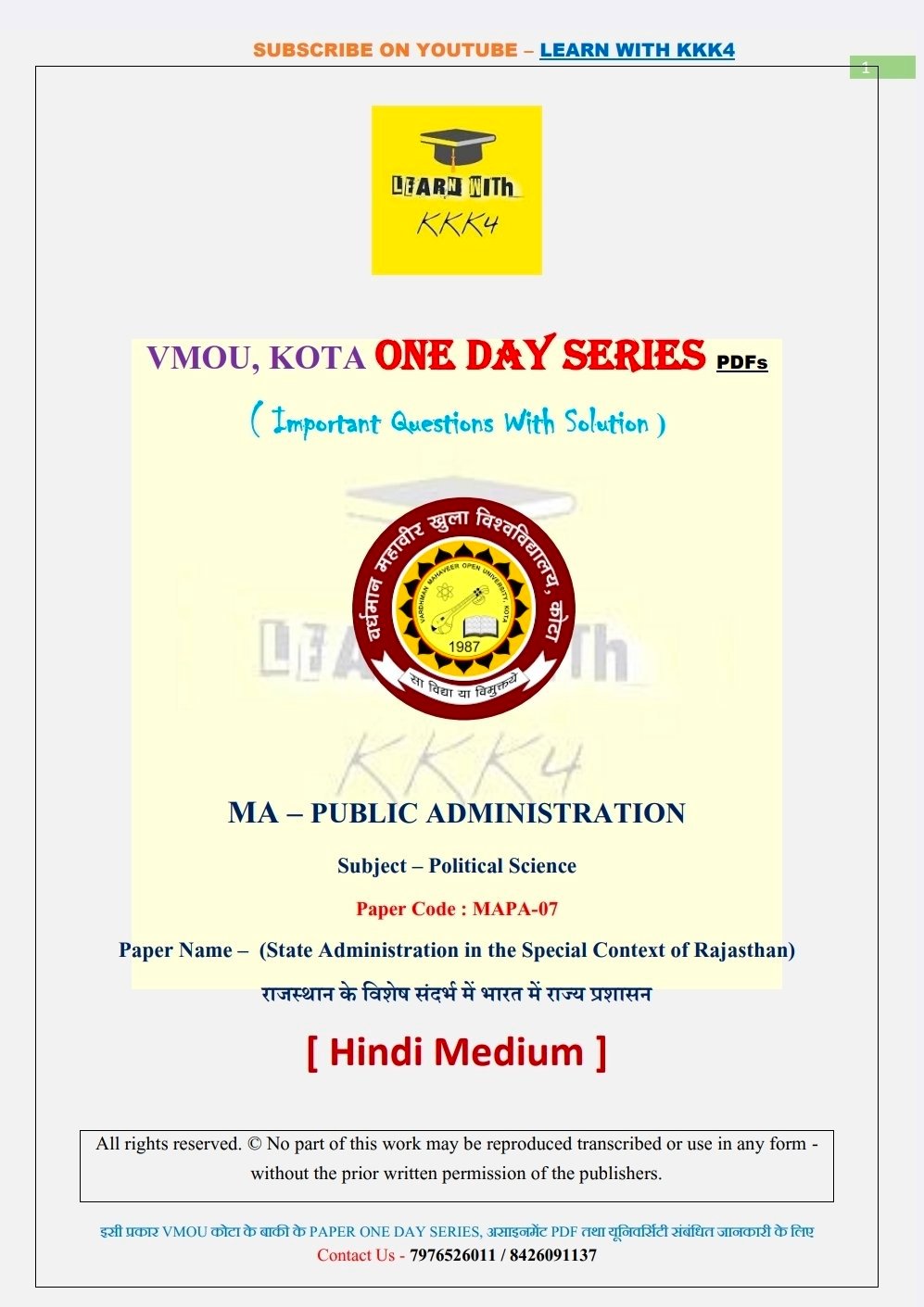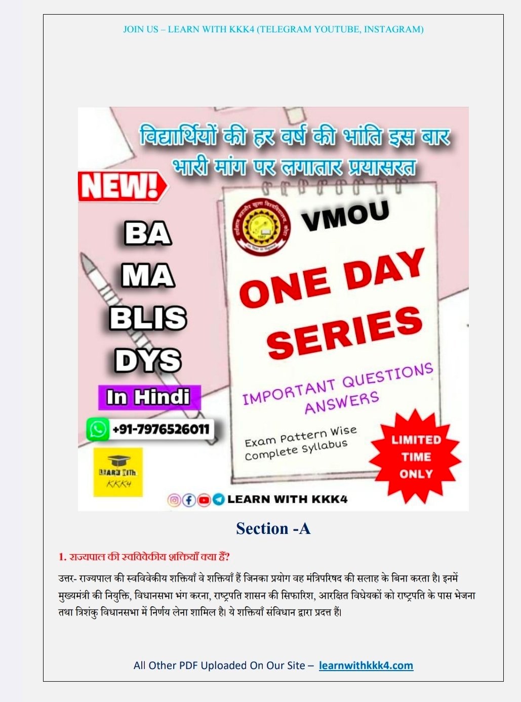 VMOU (Vardhman Mahaveer Open University, Kota) student looking for reliable and effective most important questions for exam paper ? Your search ends here! (LEARN WITH KKK4) presents a comprehensive University one day series PDF specifically designed for VMOU courses. This PDF is the perfect resource to help you excel in your studies and submit top-notch assignments