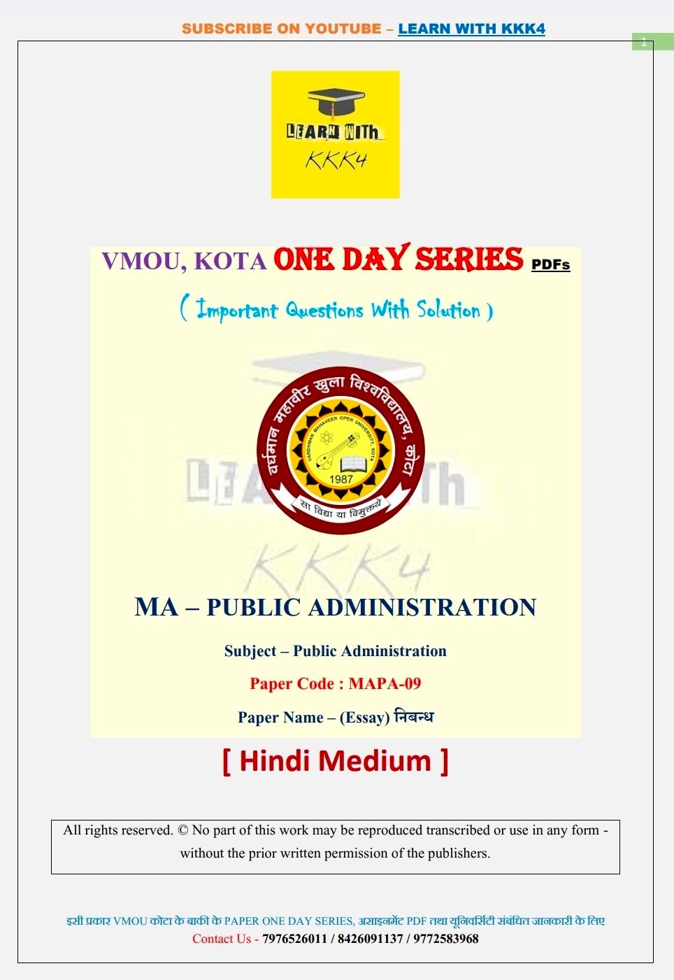 VMOU (Vardhman Mahaveer Open University, Kota) student looking for reliable and effective most important questions for exam paper ? Your search ends here! (LEARN WITH KKK4) presents a comprehensive University one day series PDF specifically designed for VMOU courses. This PDF is the perfect resource to help you excel in your studies and submit top-notch assignments