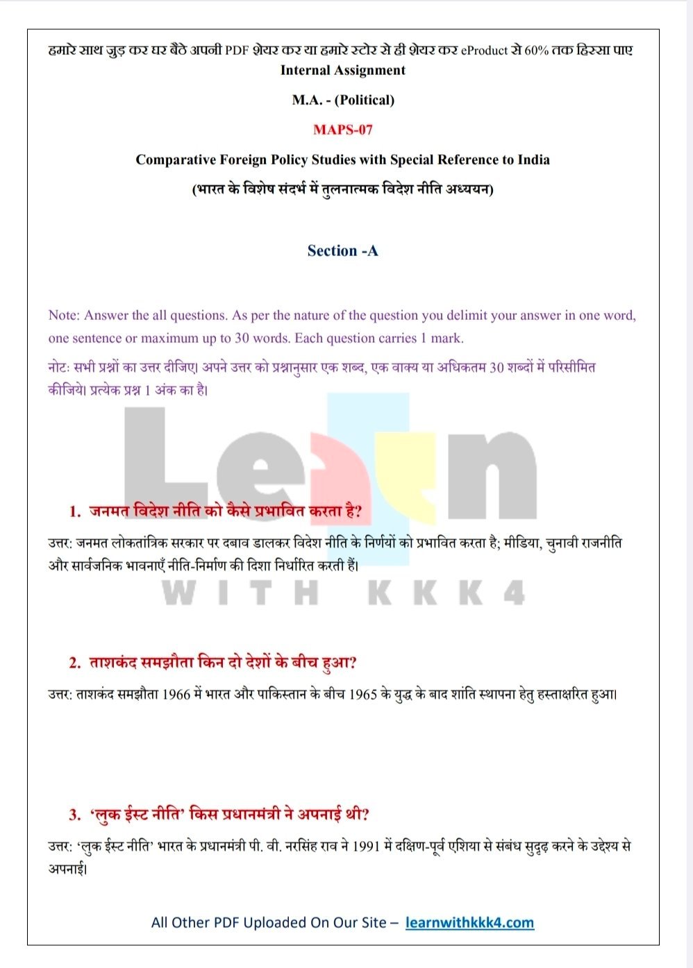 VMOU (Vardhman Mahaveer Open University, Kota) student looking for reliable and effective assignments solutions? Your search ends here! (LEARN WITH KKK4) presents a comprehensive University Assignment Solutions PDF specifically designed for VMOU courses. This PDF is the perfect resource to help you excel in your studies and submit top-notch assignments