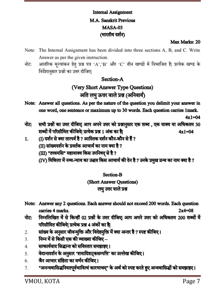 VMOU MA sanskrit science ASSIGNMENT SOLUTION PDF 2026