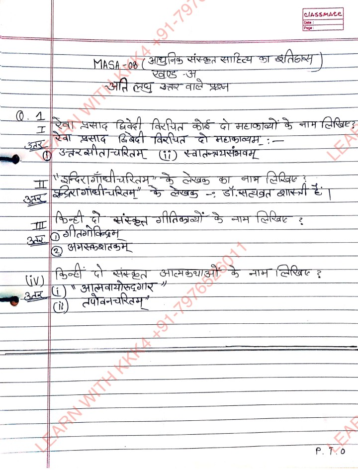 VMOU MA sanskrit science ASSIGNMENT SOLUTION PDF 2025